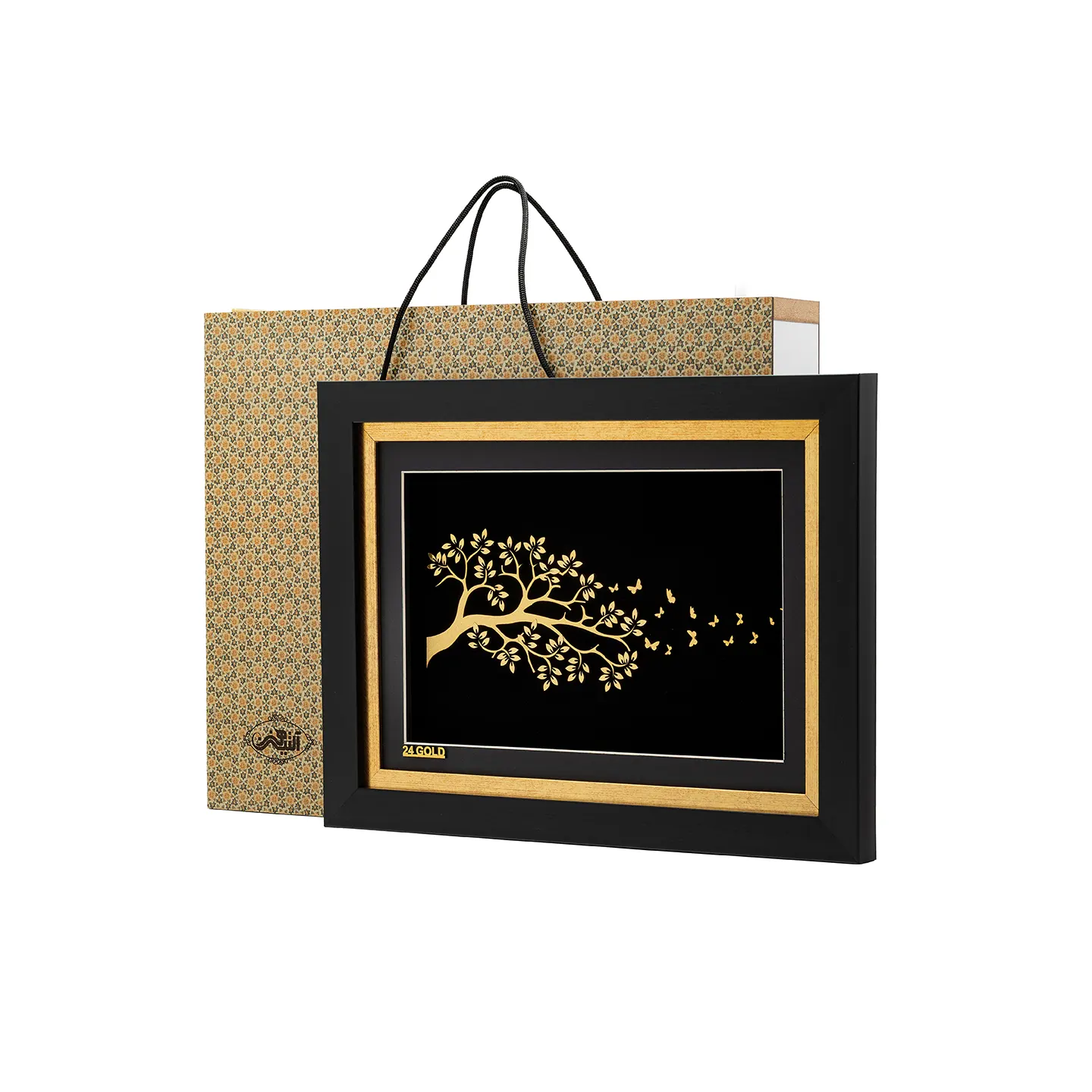 تابلو های ورق طلا درخت که جزوی از تابلو ورق طلا کادویی هستند، معمولاً از ترکیب مواد اولیه ای همچون بوم نقاشی، ورق طلا، رنگهای اکریلیک یا رزینی و گاه متریال های برجسته ساخته می شوند. هنرمند در فرآیند خلق اثر، ابتدا طرح درخت را روی بوم اجرا کرده و سپس بخش هایی از تنه، شاخه یا برگ ها را با ورق طلا تزئین می کند تا جلوه ای درخشان و سه بعدی ایجاد شود. برخی مدل ها نیز با استفاده از رزین شفاف و ترکیب رنگ های طلایی و قهوهای، حس عمق و نور را به تابلو می افزایند. از ویژگی های شاخص این آثار می توان به درخشندگی خاص، مقاومت در برابر تغییر رنگ، ماندگاری بالا و هماهنگی با سبک های دکوراسیون مختلف اشاره کرد.